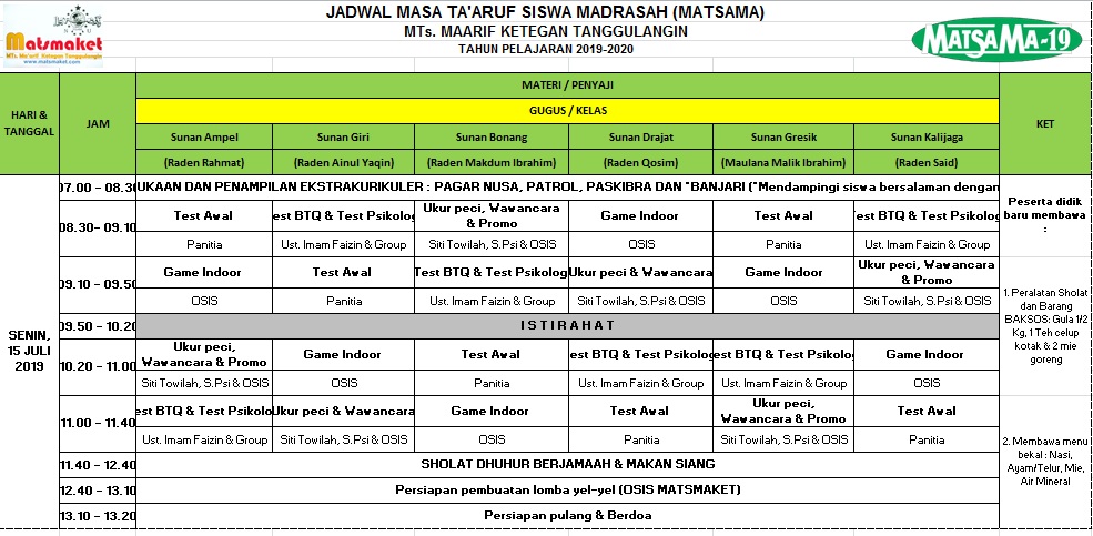 >>> JADWAL MATSAMA / MOS 2019-2020 revisi 13 Juli 2019 <<<